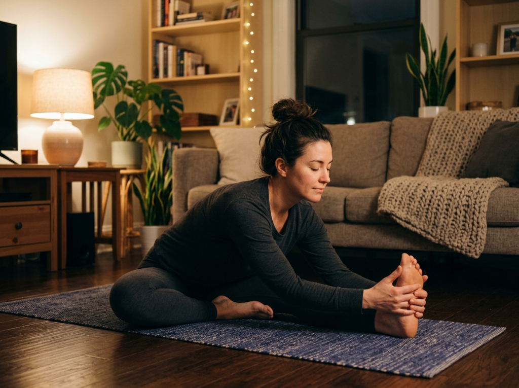 入浴後など体が温まっているタイミングは特におすすめです。体温が高いほど筋肉の粘性が下がり、伸びやすくなります。テレビを観ながら、寝る前のルーティンとして——生活の流れに組み込んでしまうのが長続きのポイントです。