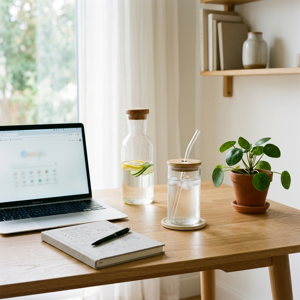 最も効果的なのは「水が常に目に入る場所にある」状態をつくることです。ペットボトルやタンブラーをデスクに置いておくだけで、自然に飲む回数が増えます。