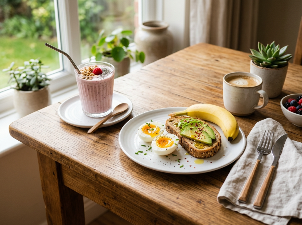 朝は食欲がない方も多いですが、タンパク質が不足すると午前中のエネルギーが続きにくくなります。スムージーや牛乳に混ぜるだけで手軽に補えます。