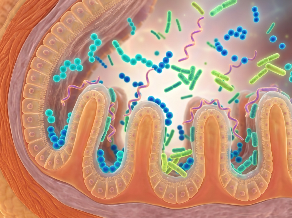 腸内フローラの役割は、消化や便通にとどまりません。栄養素の吸収効率、体脂肪の代謝、炎症反応のコントロール、ホルモン分泌のサポート、さらには脳の働きや気分にまで影響を与えることが研究で示唆されています。