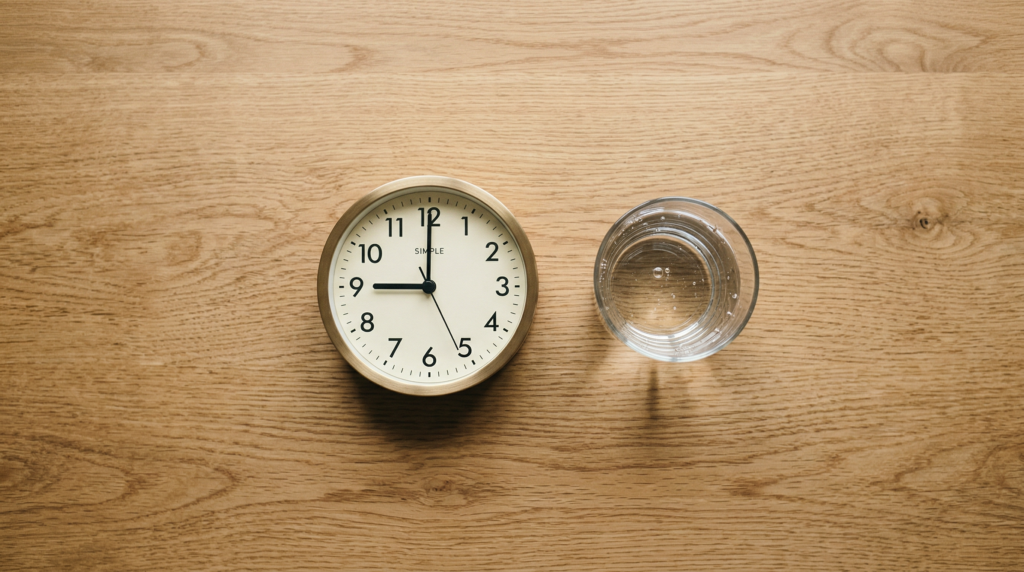 たとえば夜8時に食事を終えたら、翌日のお昼12時まで食べないようにする——それだけで成立します。