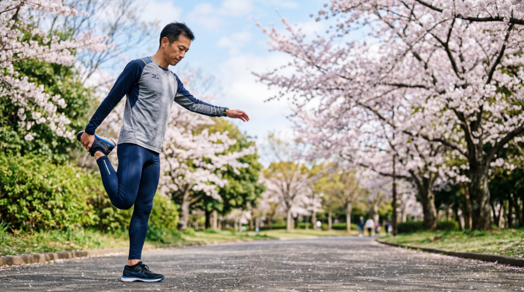 40代になると、関節や腱の回復力が20代の頃と比べて落ちています。クッション性の低いシューズで毎日ランニングを続けると、膝や足底への負担が蓄積しやすくなります。動きを制限するウェアを着たまま無理に可動域を確保しようとすると、筋肉や関節に無理な力がかかることもあります。